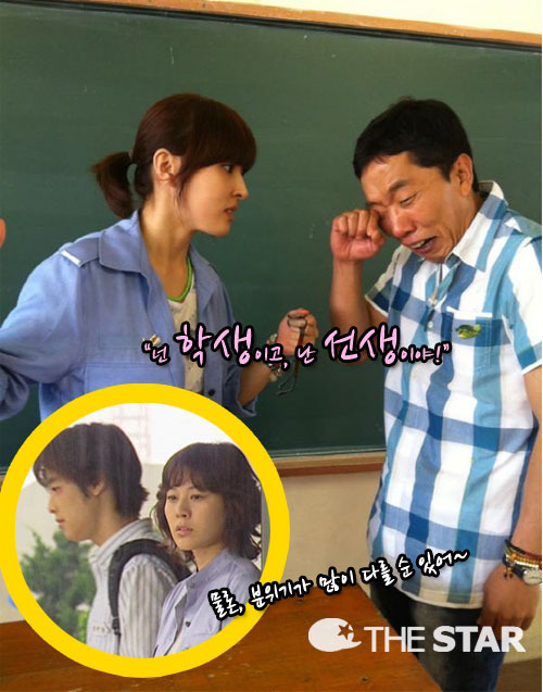 15일 김제동은 자신의 트위터에 "넌 학생이고 난 선생이야"라는 글과 함께 한 장의 사진을 공개했다. 공개된 사진은 '김제동 한혜진 로망스' 재연 모습.