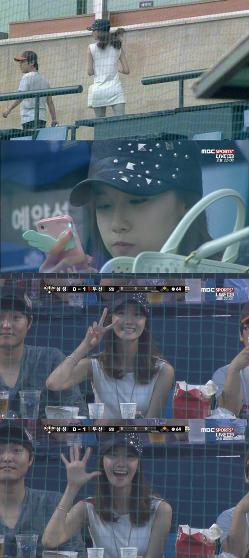 소녀시대 멤버 윤아와 가수 서인국이 야구장에 동행한 사실이 방송 카메라에 포착됐다.