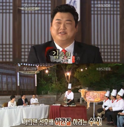 24일 KBS 2TV '해피선데이-남자의 자격'에서는 고기 굽기 노하우를 두고 일곱 남자들이 대결을 펼친 '남자, 그리고 한 점의 승부' 편이 방송됐다.