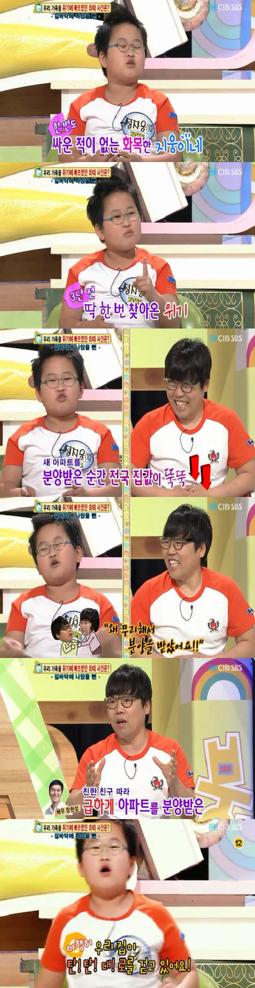 아들 지웅군은 3년 전 아빠가 새 아파트를 분양받았으나 원래 집이 팔리지 않아 가족들이 모두 함께 길거리에 나앉을 뻔 한 사연을 소개했다.