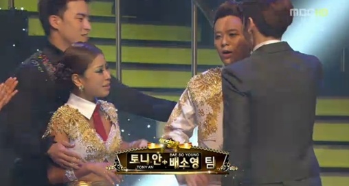 지난 주 탈락 위기에 놓였던 토니안 배소영 팀이 15일 오후 방송된 MBC 댄스 서바이벌 '댄싱 위드 더 스타 2'에서 1위를 차지했다. 반면 신수지 권순빈 팀은 탈락했다.