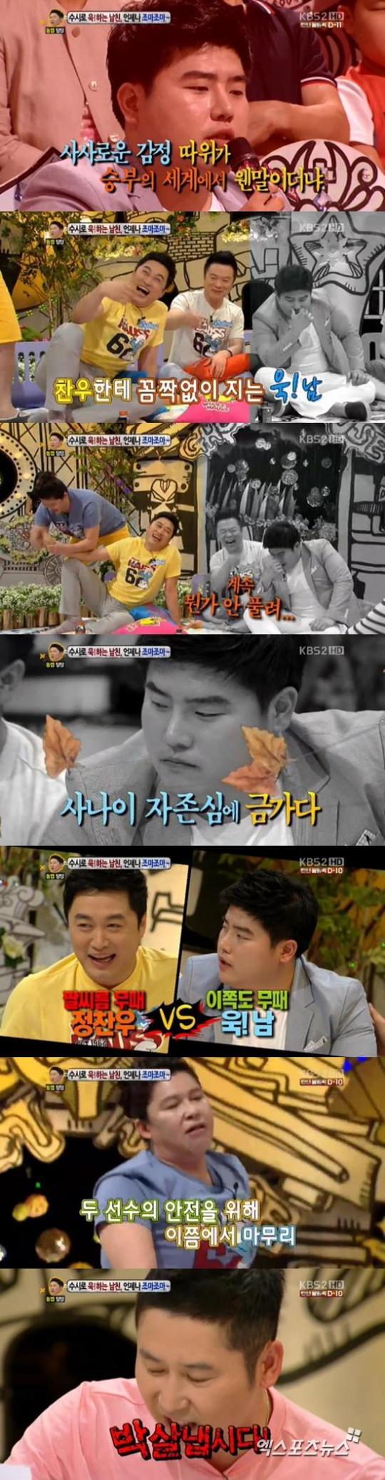 이들은 가위바위보 승부를 끝낸 후 함께 팔 씨름을 했다. 정찬우는 욱하는 남친에게 바로 패하고 말아 웃음을 선사했다.
