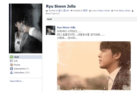 류시원은 지난 13일 자신의 페이스북에 "이제부터 시작이다......마니 힘들겠지만....내딸현서를 생각하며.......사랑해.....현서야..."라고 적었다. 많은 고민이 담긴 글과 함께 어두운 표정의 자신의 사진도 게재했다.
