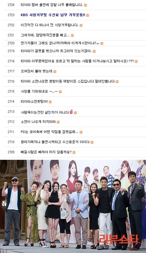현재 시청자들은 ‘해운대 연인들’ 공식 홈페이지에 지속적으로 소연의 퇴출을 요구하고 있고, ‘해운대 연인들’과 관련된 기사엔 기사 내용과 동떨어진 소연 하차에 관한 댓글만이 올라오고 있다. 티아라 사태 10일이 경과한 지금, 이들을 둘러싼 대중들의 분노는 쉬이 가라앉지 않을 전망이다.